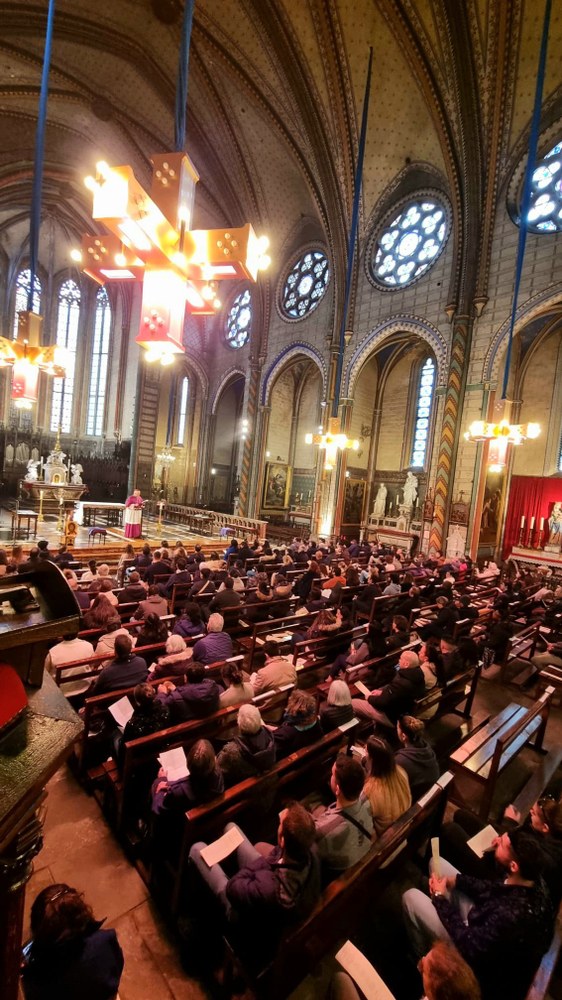 Mgr Valentin a célébré L'Appel décisif de 55 adultes et 25 lycéens pour qu'ils soient baptisés lors de la prochaine nuit de Pâques : un nombre en forte hausse dans l'Aude comme partout en France. Après l'accueil au lycée Saint Stanislas pour un temps de partage biblique, la célébration des vêpres empreinte de beaucoup de joie et d'émotion s'est déroulée à la cathédrale Saint Michel de Carcassonne.