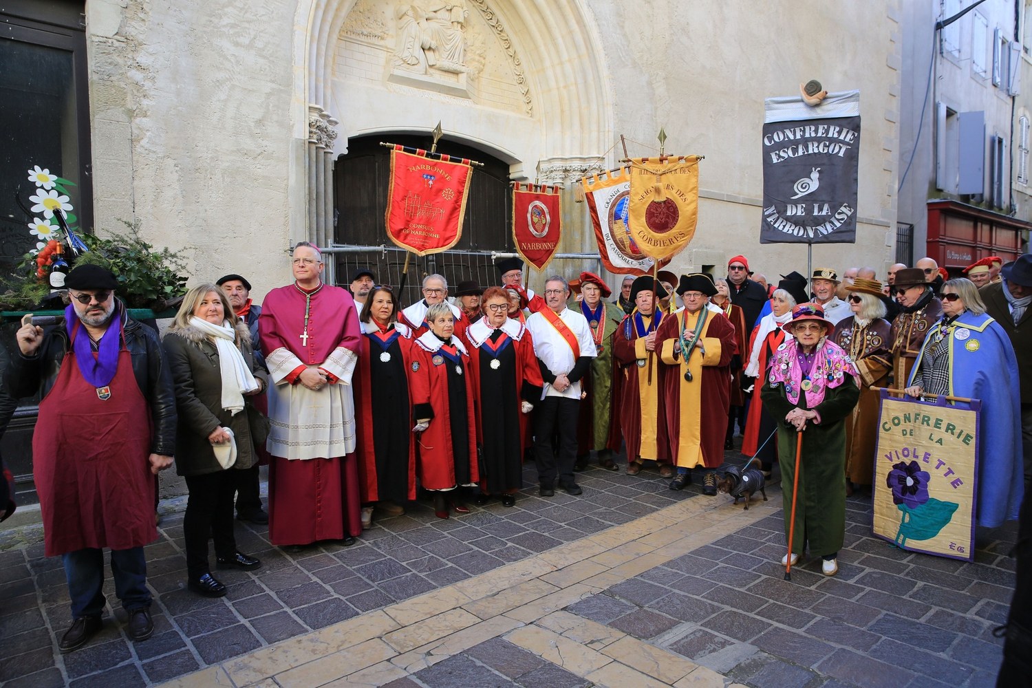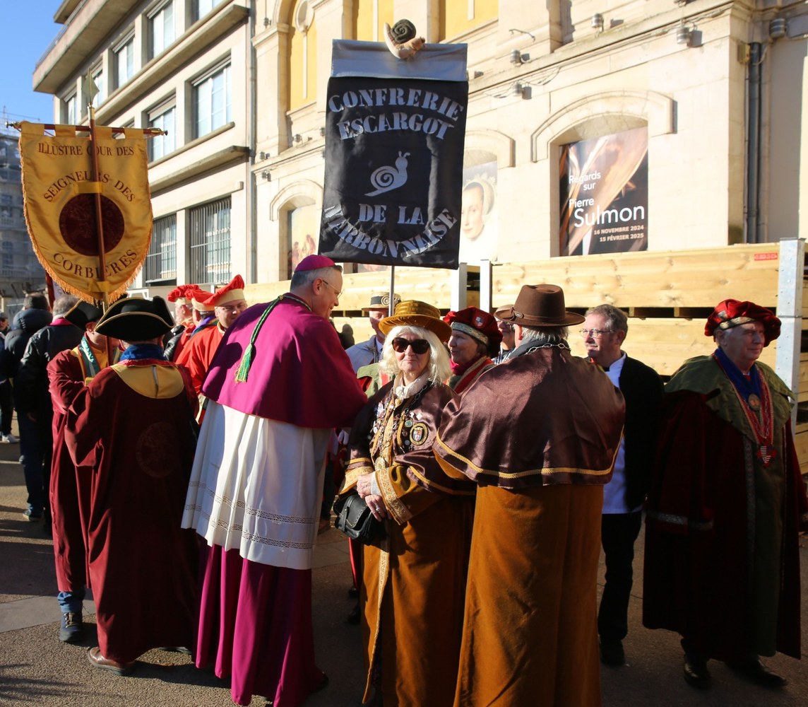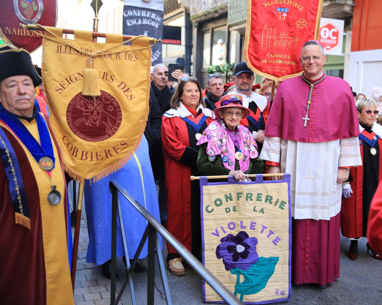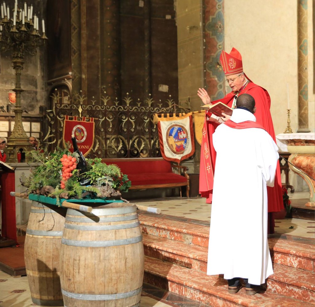 Joyeuse procession de la Saint Vincent dans les rues de Carcassonne : une occasion pour Mgr Valentin de retrouver les confréries pour un moment chaleureux et priant. Méditant l'évangile des noces de Cana, notre évêque a invité les professionnels de la vigne et du vin à se fier à Jésus pour être le sauveur de leur joie.