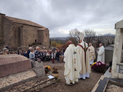 Mgr Valentin a souhaité célébrer cette année la fête de la Toussaint à Fontjoncouse, pour continuer à porter un message d'Esperance sur la terre des Corbières dévastée cet été par le feu. Situé au cœur de la zone sinistrée, Fontjoucouse a subi notamment de gros dégâts dans son cimetière.