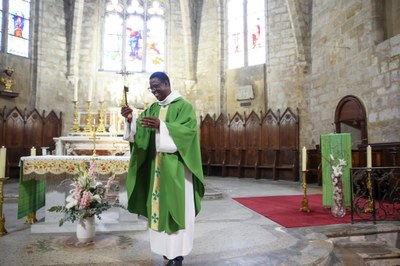 La paroisse St Vincent en Narbonnais a désormais un nouveau curé : le père Etienne Lompo a été installé dimanche 21 septembre à Ginestas par notre évêque. Il a reçu symboliquement la clé de l'église des mains de Madame la Maire de Ginestas. Nos prières l'accompagnent dans sa nouvelle mission !