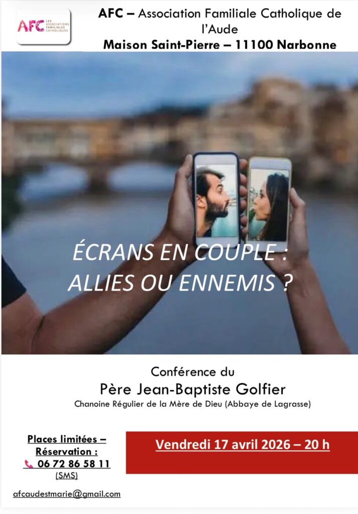 L’Association Familiale Catholique de l’Aude organise une conférence ouverte à tous vendredi 17 avril à 20h à la Maison Saint-Pierre