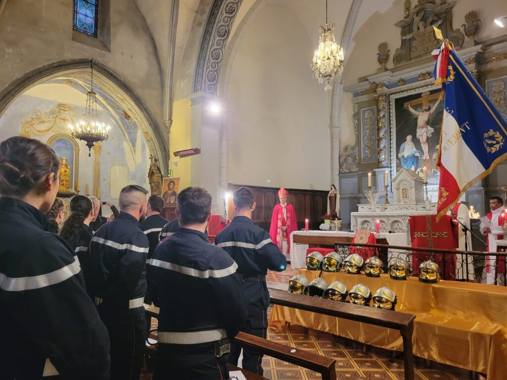 Notre évêque a participé samedi 24 janvier dernier à la fête de la Sainte Barbe, à la caserne des pompiers de Tuchan. L’occasion de bénir les casques et de rendre hommage à ces femmes et ces hommes vaillants, particulièrement dans une zone où les incendies des Corbières ont fait tant de ravages.