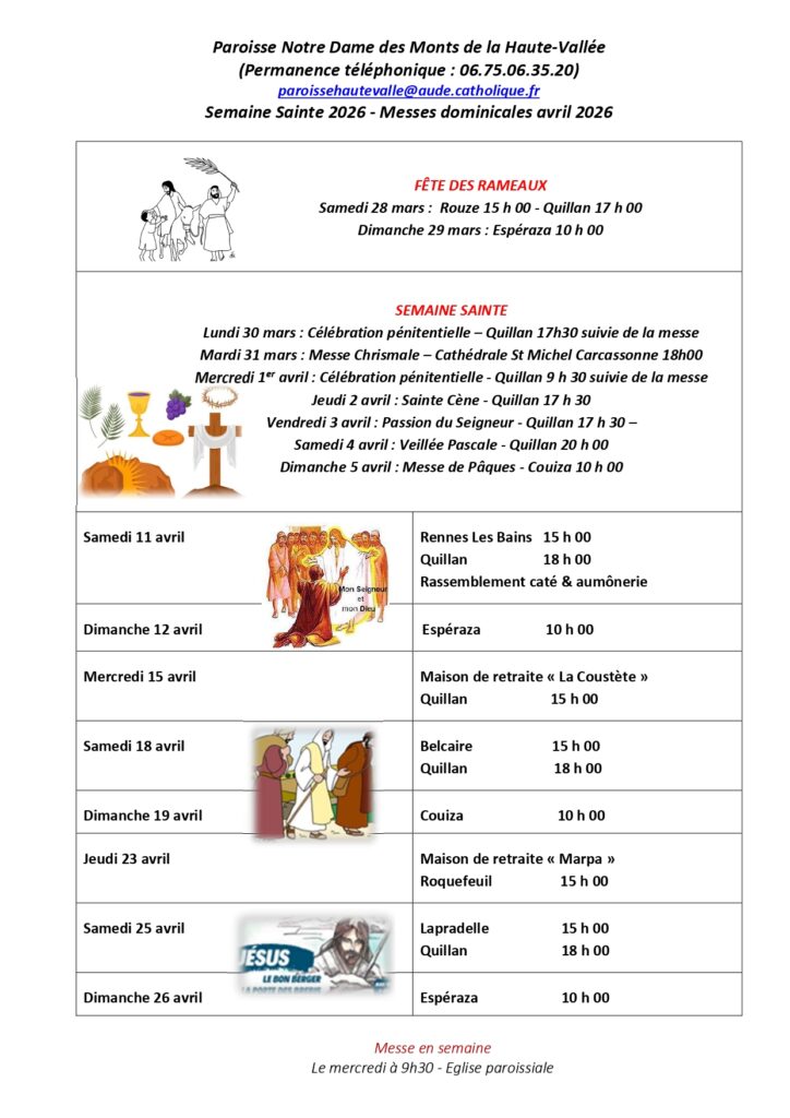 - le mercredi 9h00 Quillan chapelle de l’Ange Gardien