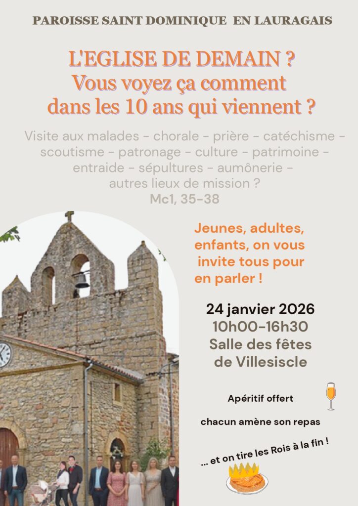Vous êtes tous invités à participer à la journée du 24 janvier à VILLESISCLE .L’objectif de l’assemblée est de discerner les lieux de la mission dans l’Aude dans 10 ans .
