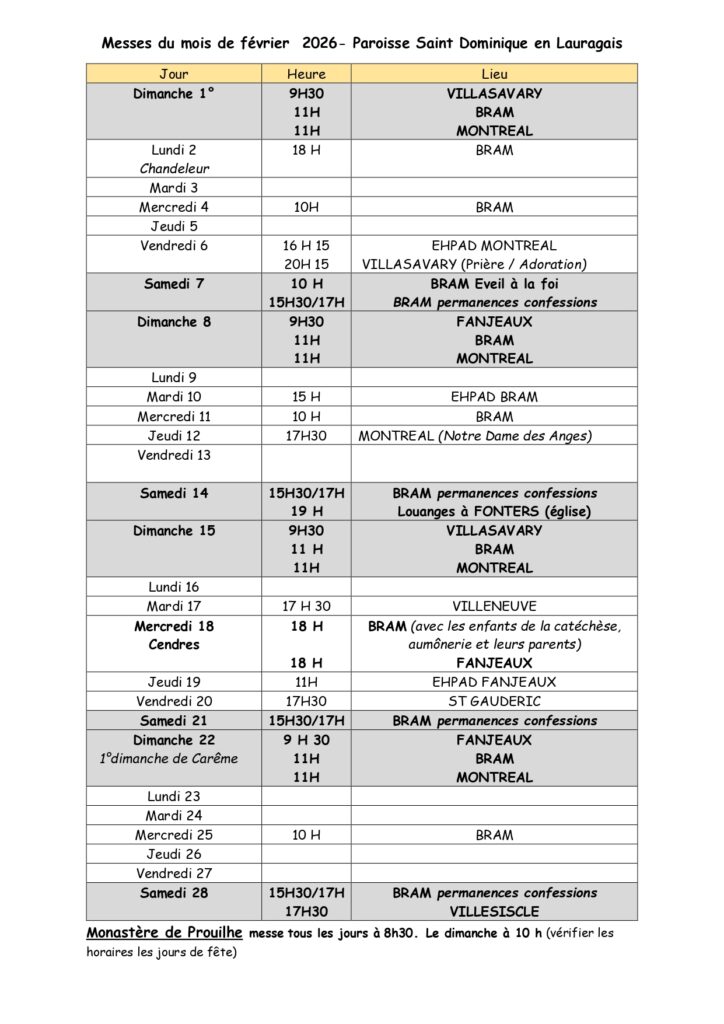 - Adoration à Villasavary tous les premiers vendredis du mois à 20H15