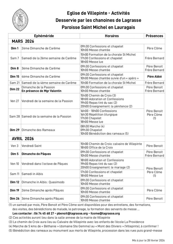 Je vous rappelle ou apprends les résolutions de Carême pour notre communauté de Villepinte que je vous encourage à prendre :