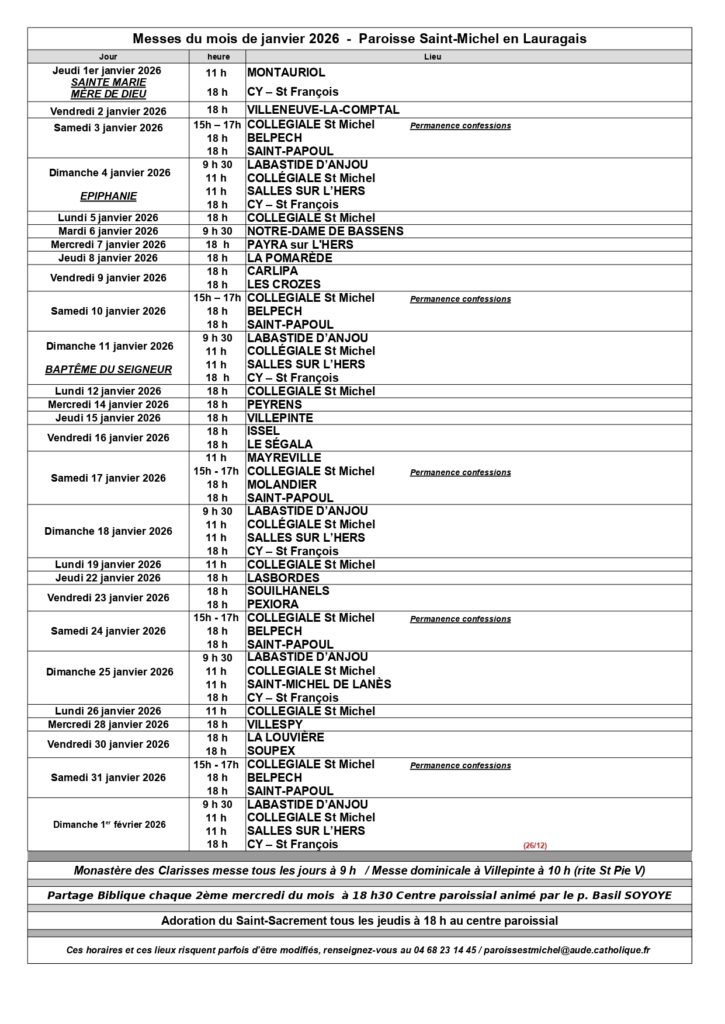 Horaires de messes