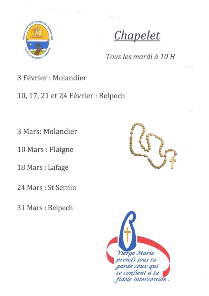 Les Équipes du Rosaire propose annuellement une journée de rassemblement diocésain qui réunit entre 300 et 400 personnes. Au niveau paroissial, des après-midis de récollection sont proposés pendant les temps de l’Avent et de Carême. Une rencontre de prière, mais aussi conviviale, est proposée en janvier pour partager la couronne/galette des rois. Ces différentes rencontres se font au Centre paroissial de Soubiran.