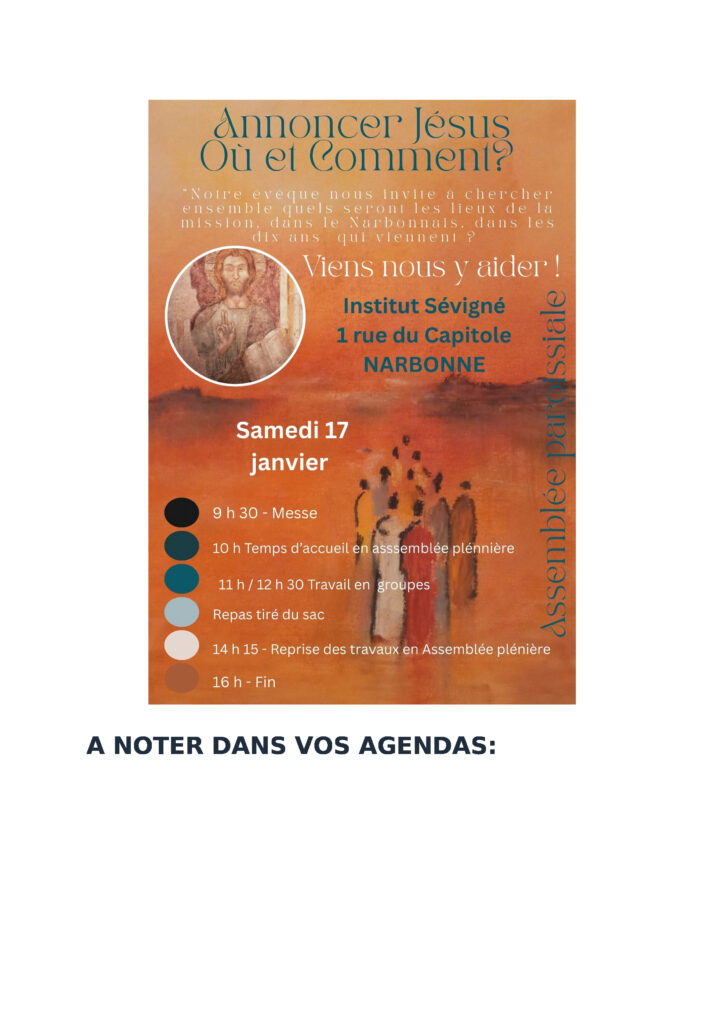 Après ces assemblées, Monseigneur Valentin viendra dans chaque paroisse entre janvier et avril 2026 pour écouter vos réflexions et poursuivre le dialogue. Votre voix compte. Rejoignez-nous ! Pour plus d’informations contactez votre paroisse :