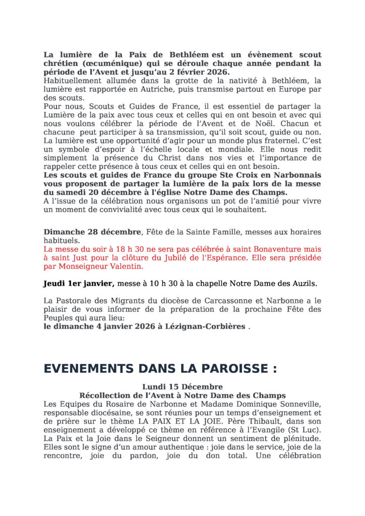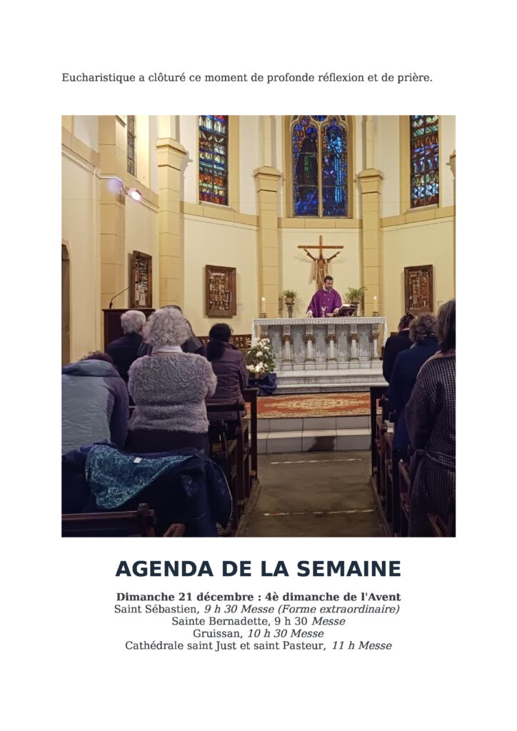 Retrouvez ici tous les événements à venir de la paroisse : messes, célébrations, temps forts liturgiques, rencontres, réunions, temps de prière, et autres rendez-vous de la vie paroissiale. Cet agenda est régulièrement mis à jour pour vous permettre de rester informés et de participer pleinement à la vie de notre communauté.