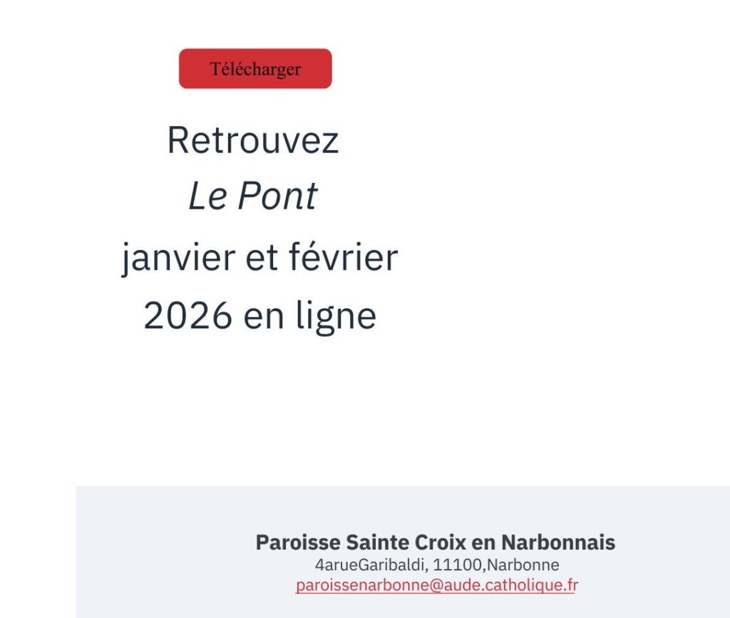 Dans cette rubrique, vous pouvez vous inscrire aux lettres paroissiales. Elles contiennent des nouvelles de la paroisse, des éditoriaux, des méditations, des dates importantes, ainsi que des échos des événements vécus en communauté. Un bon moyen de rester informé(e) et de nourrir sa vie spirituelle au fil des semaines. Ecrivez à paroissenarbonne@aude.catholique.fr