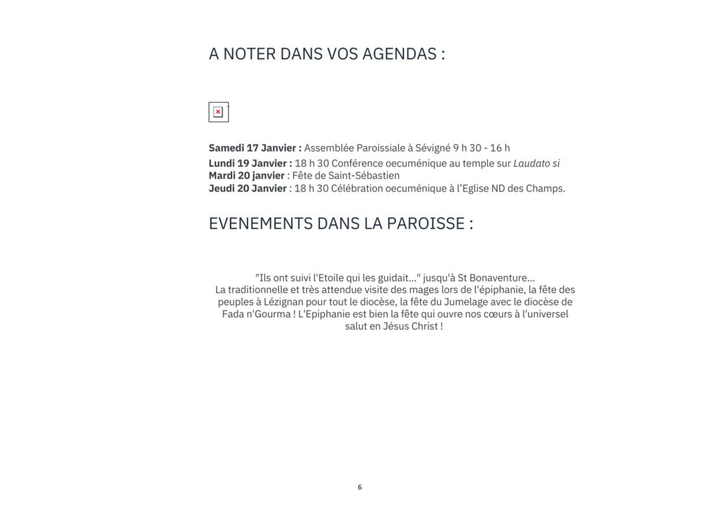 Retrouvez ici tous les événements à venir de la paroisse : messes, célébrations, temps forts liturgiques, rencontres, réunions, temps de prière, et autres rendez-vous de la vie paroissiale. Cet agenda est régulièrement mis à jour pour vous permettre de rester informés et de participer pleinement à la vie de notre communauté.