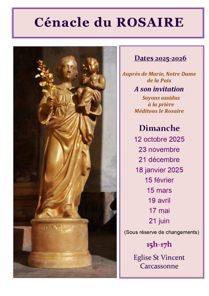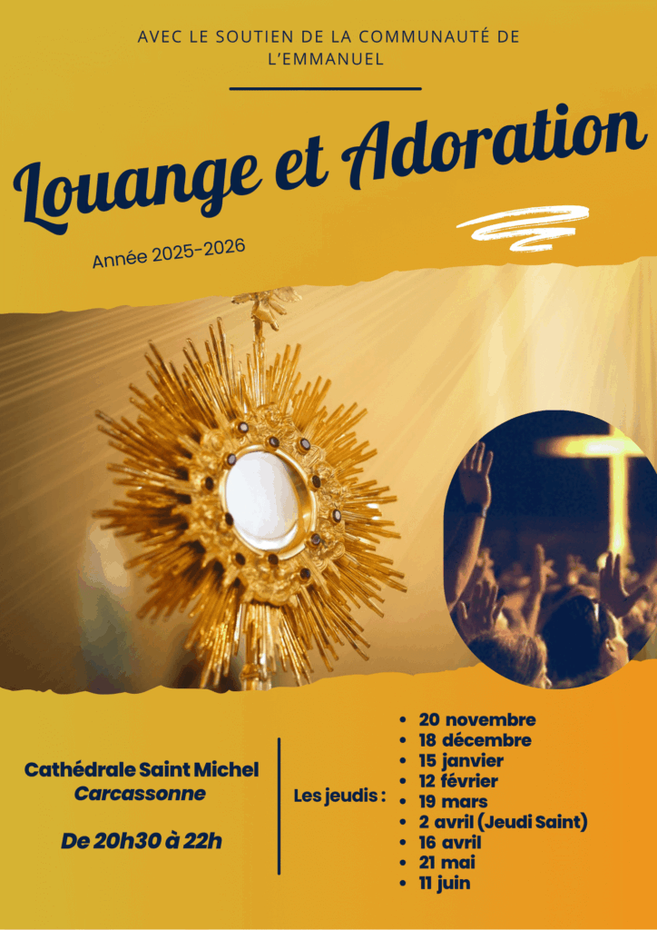 Il existe également pour les étudiants, et les jeunes professionnels un groupe existant qui se réunit tous les deux semaines les mercredi à 19h00 à l’église du Sacré-Cœur de Carcassonne. Pour vivre et intégrer ce groupe, prière contacter Séraphin via cette adresse mail : seraphinivan@outlook.fr