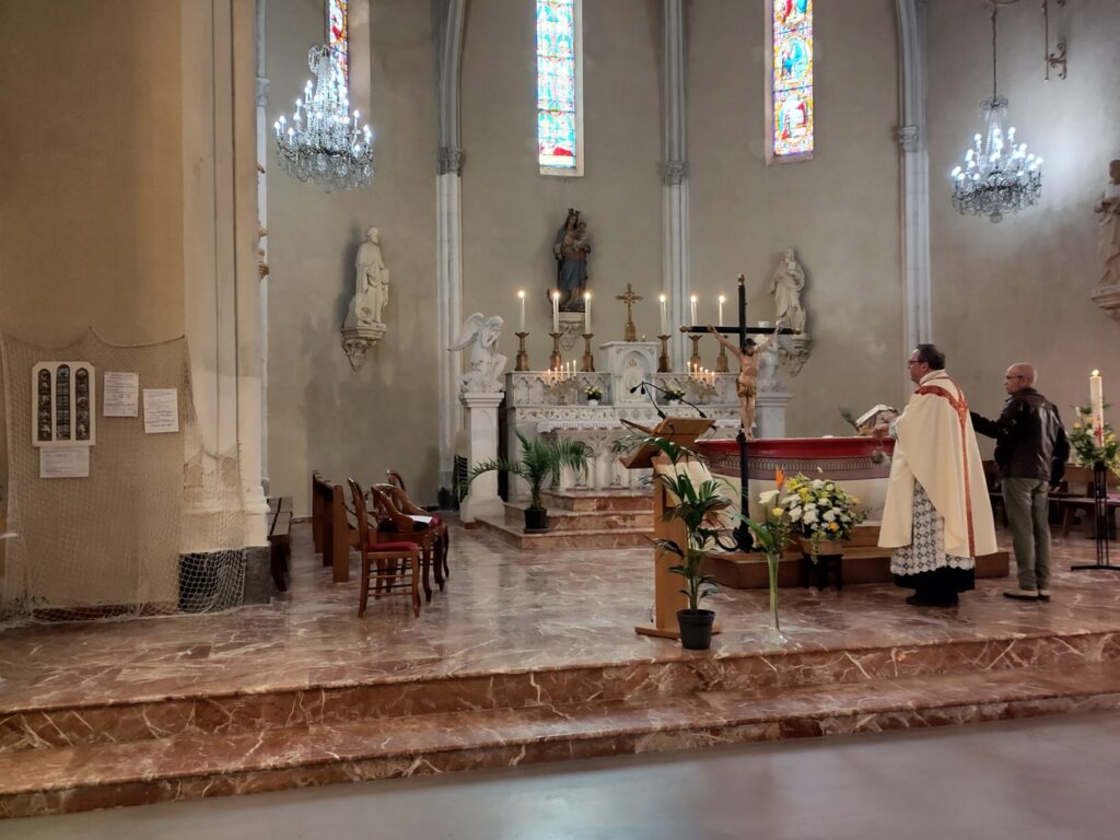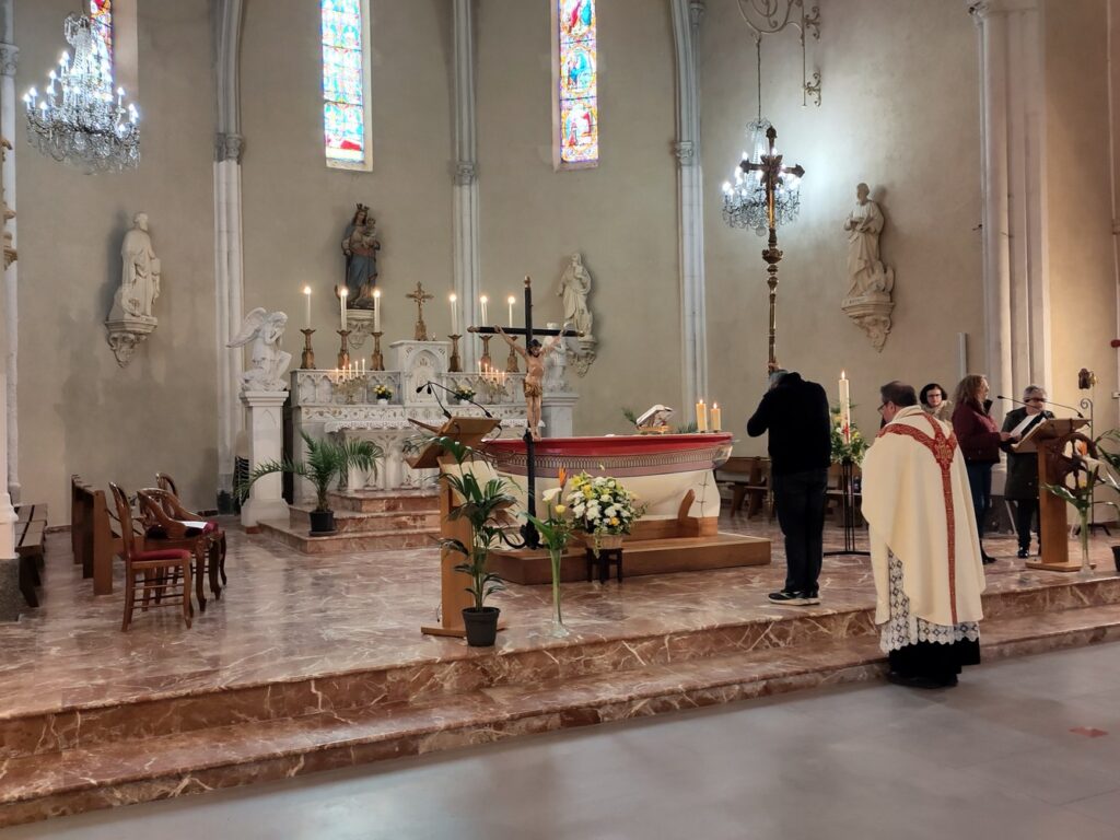 À Port-la-Nouvelle, devant une assemblée nombreuse et diversifiée, le père Olivier Escaffit nous a encouragé à être généreusement vivant pour que la mort et le mal n’aient pas le dernier mot.