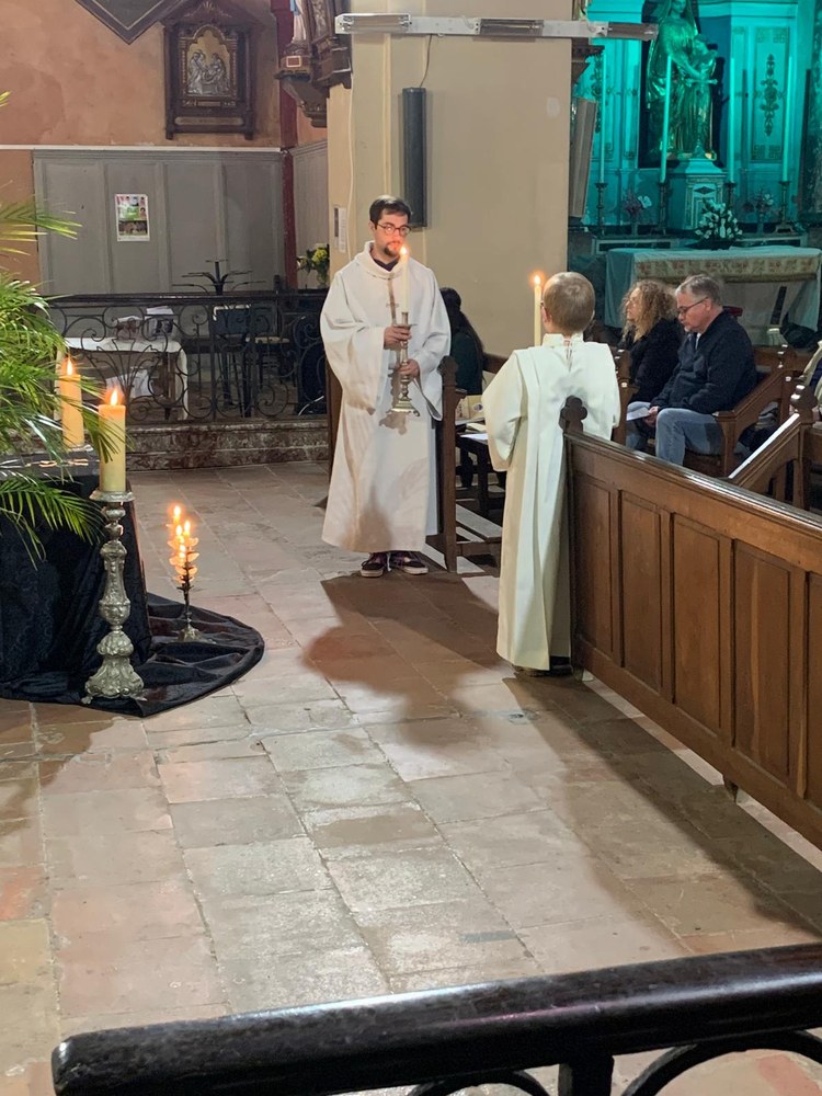 Pour lui rendre hommage, notre curé Olivier Escaffit nous a invité à s’engager à devenir des témoins lumineux de l’espérance.