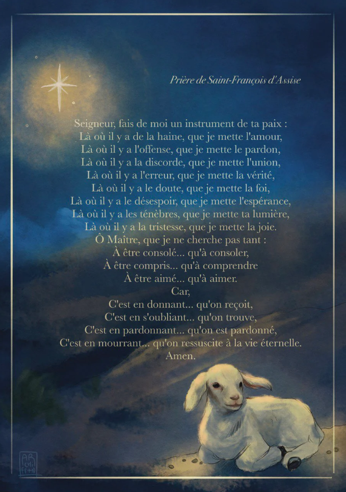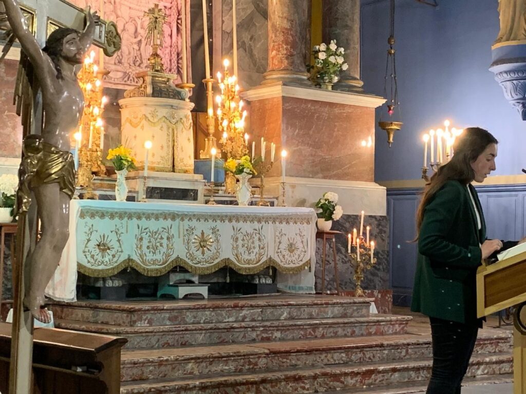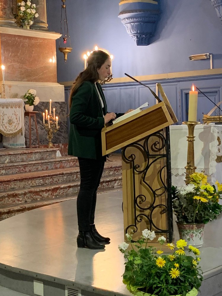 Pour finir, la prière de Saint-François d’Assise a été récitée par Aline et Madeleine devant une église émue.