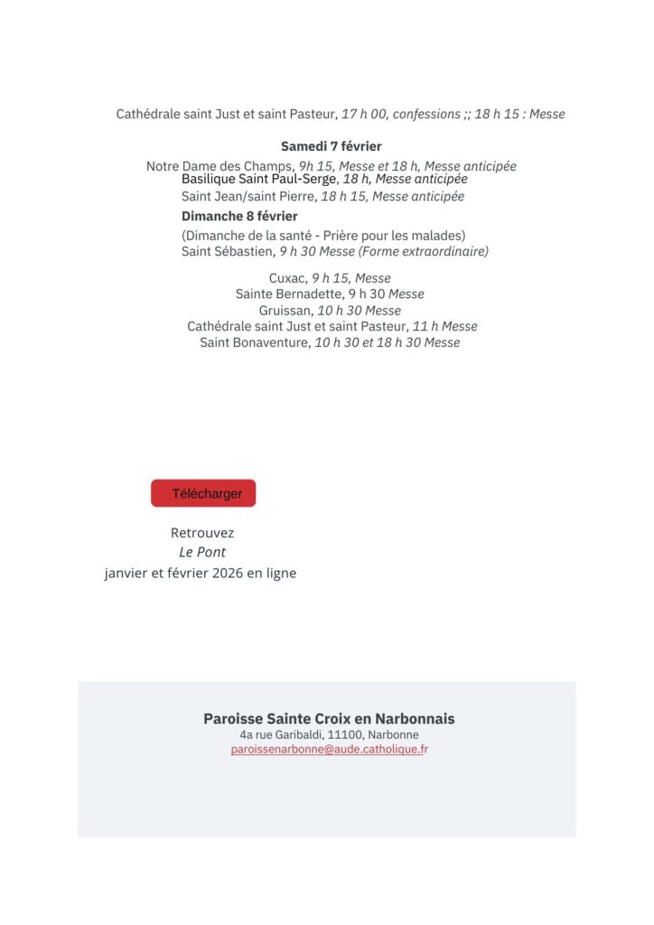 Dans cette rubrique, vous pouvez vous inscrire aux lettres paroissiales. Elles contiennent des nouvelles de la paroisse, des éditoriaux, des méditations, des dates importantes, ainsi que des échos des événements vécus en communauté. Un bon moyen de rester informé(e) et de nourrir sa vie spirituelle au fil des semaines. Ecrivez à paroissenarbonne@aude.catholique.fr