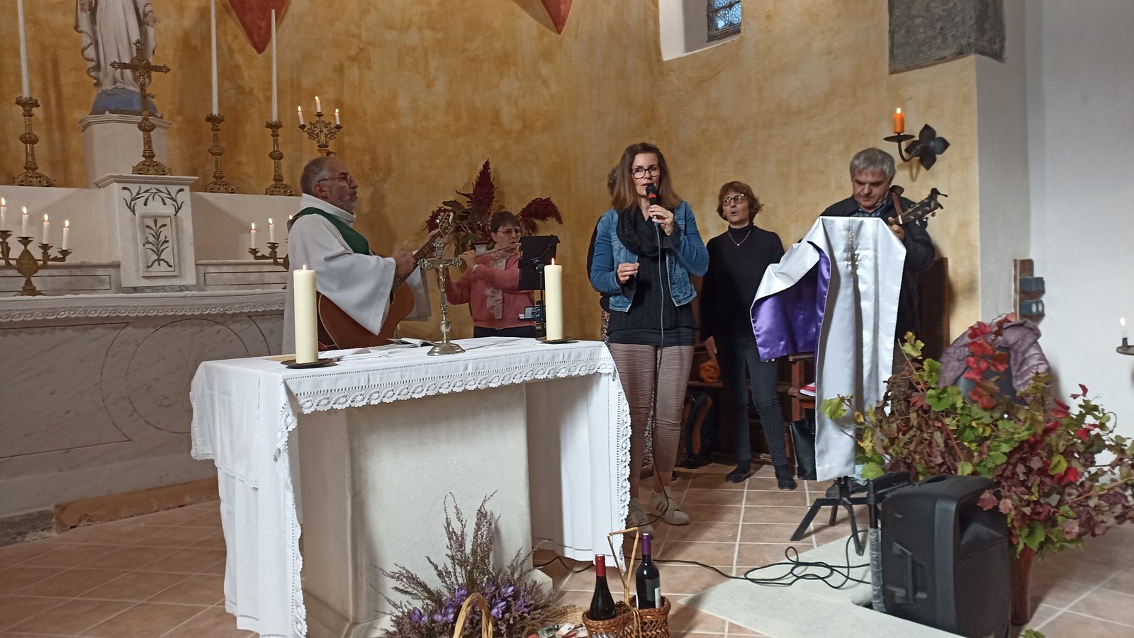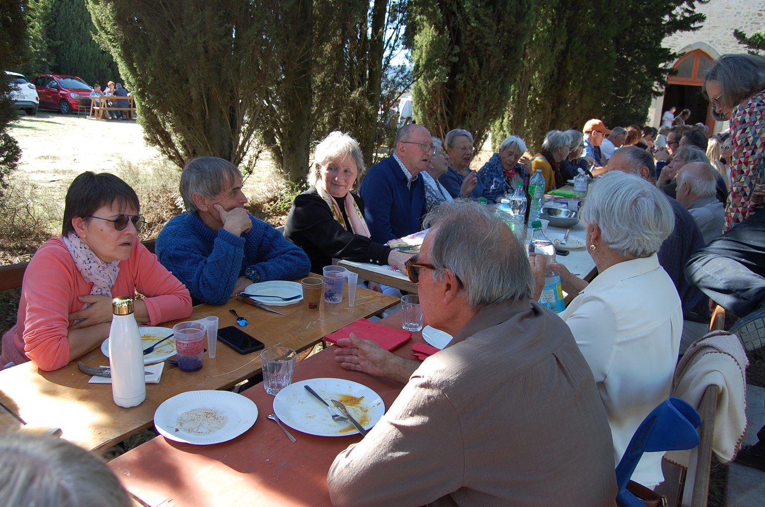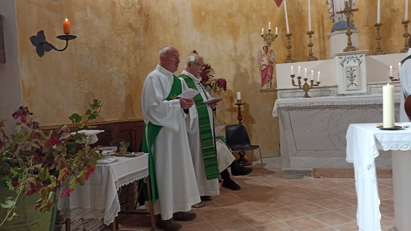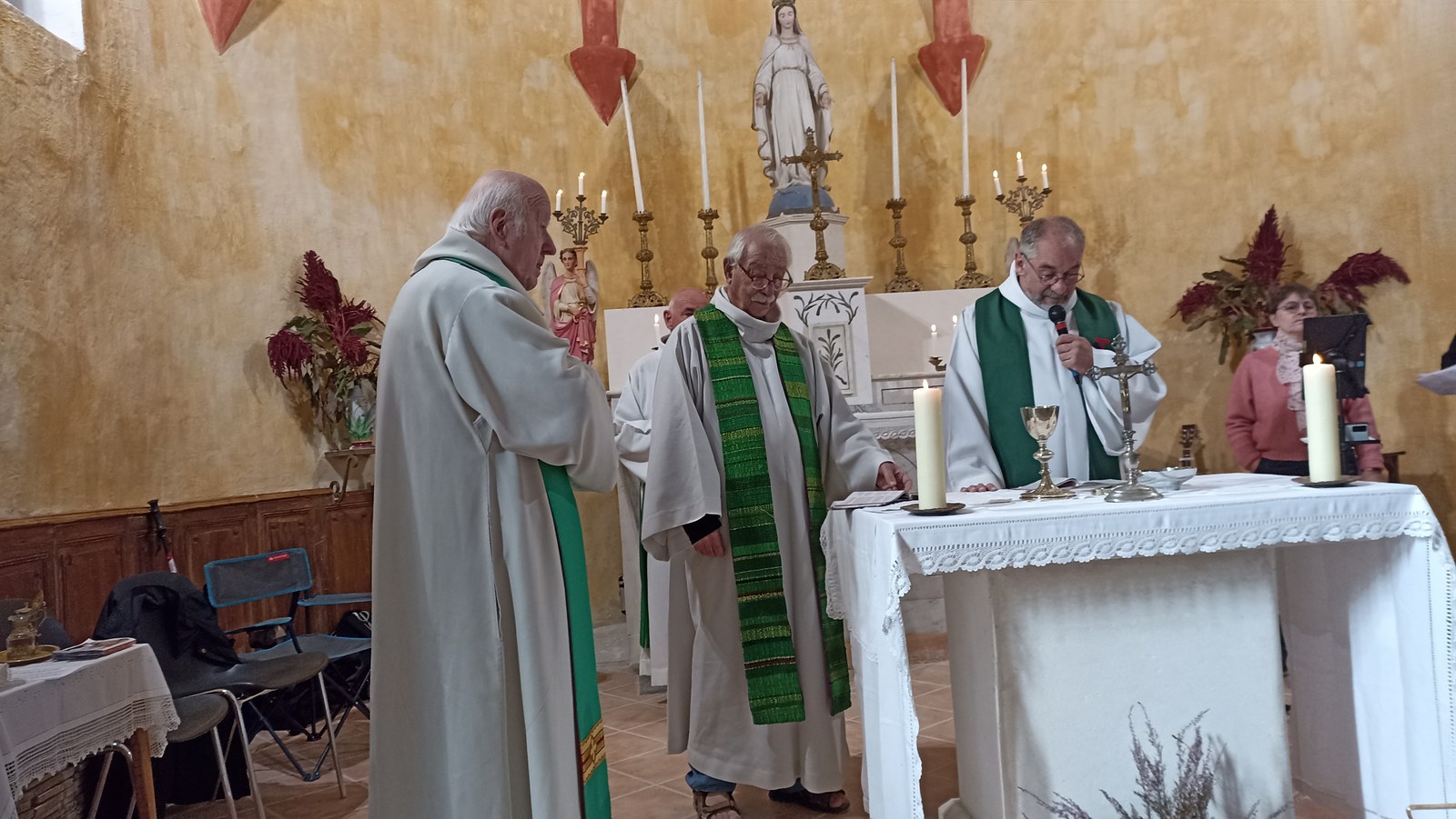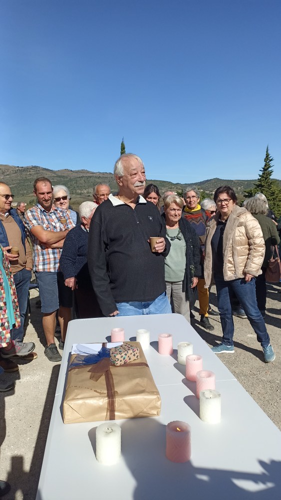 En ce dimanche très ensoleillé de la fin du mois d'octobre, les viticulteurs ont été mis à l'honneur lors de la troisième édition de la fête des vendanges. A cette occasion, une cinquantaine de paroissiens se sont assemblés dans la chapelle Notre Dame de Cambouras qui de mois en mois est embellie grâce à l'action de l'association "LES AMIS DE NOTRE DAME DE CAMBOURAS" Après une messe très suivie, les personnes ont pu partager un repas. Ce moment très convivial a été également l'occasion de fêter les 80 ans du prêtre Régis Alquier.