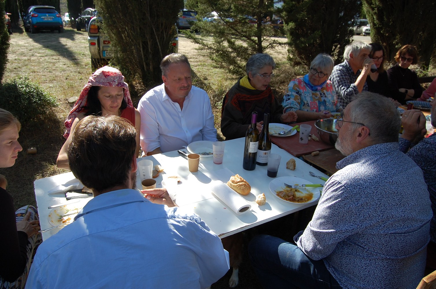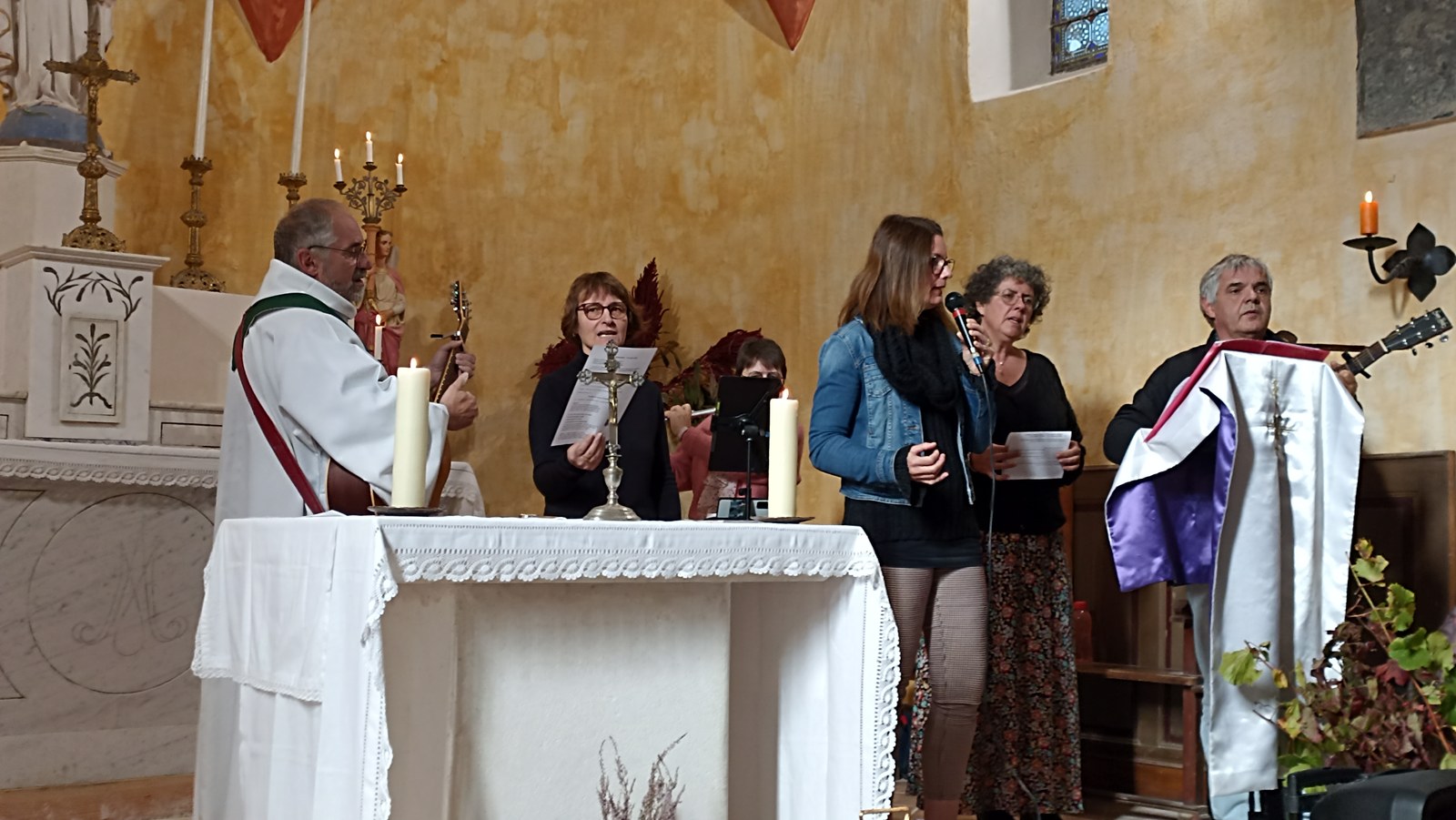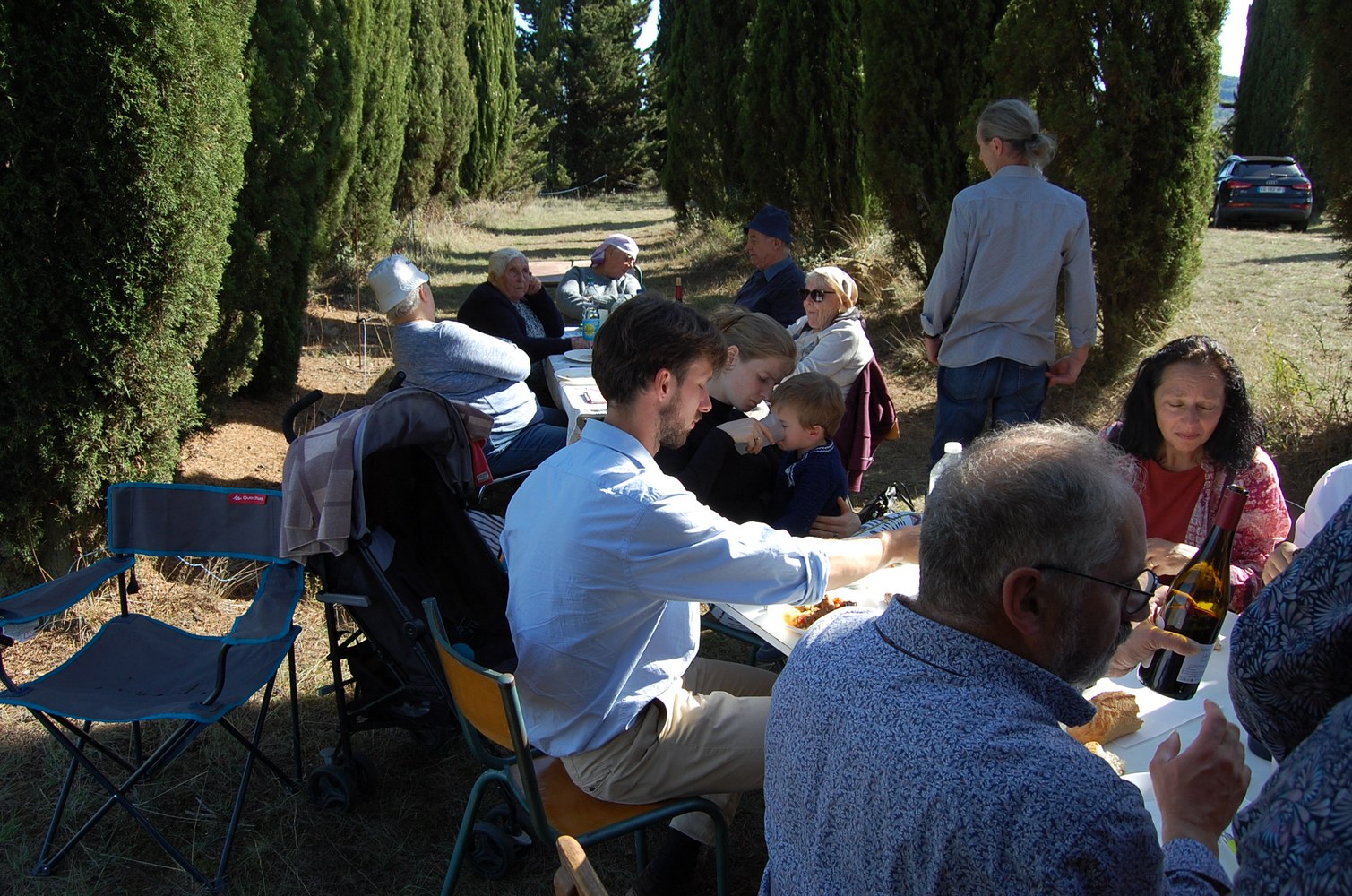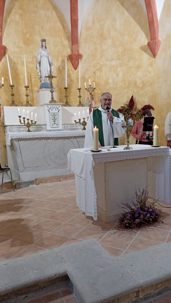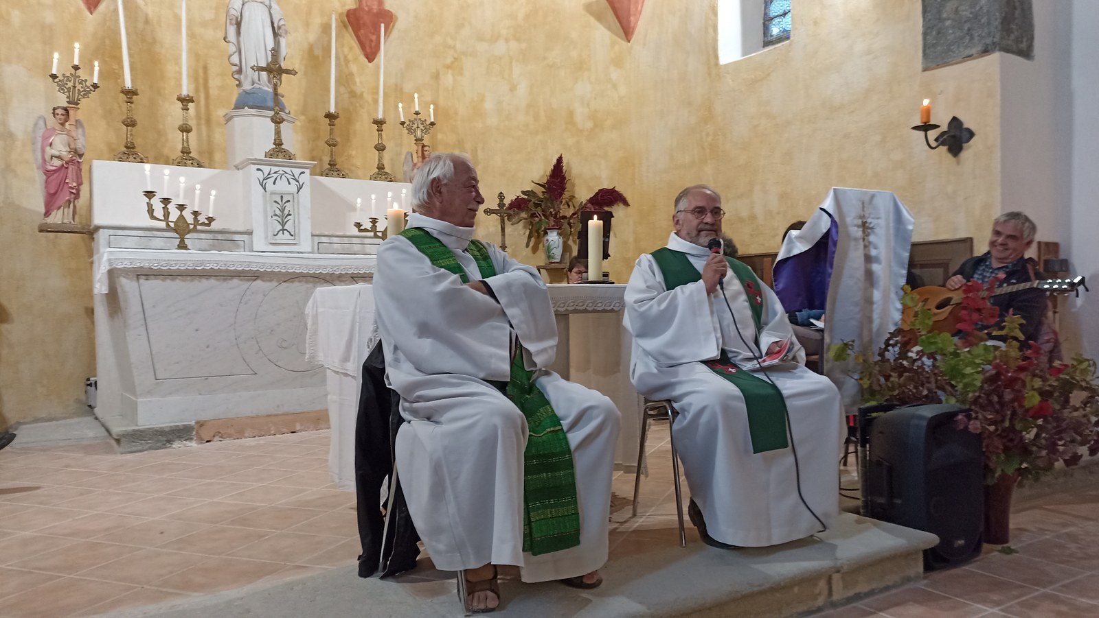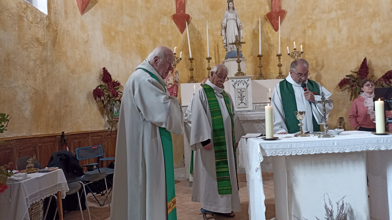 En ce dimanche très ensoleillé de la fin du mois d'octobre, les viticulteurs ont été mis à l'honneur lors de la troisième édition de la fête des vendanges. A cette occasion, une cinquantaine de paroissiens se sont assemblés dans la chapelle Notre Dame de Cambouras qui de mois en mois est embellie grâce à l'action de l'association "LES AMIS DE NOTRE DAME DE CAMBOURAS" Après une messe très suivie, les personnes ont pu partager un repas. Ce moment très convivial a été également l'occasion de fêter les 80 ans du prêtre Régis Alquier.