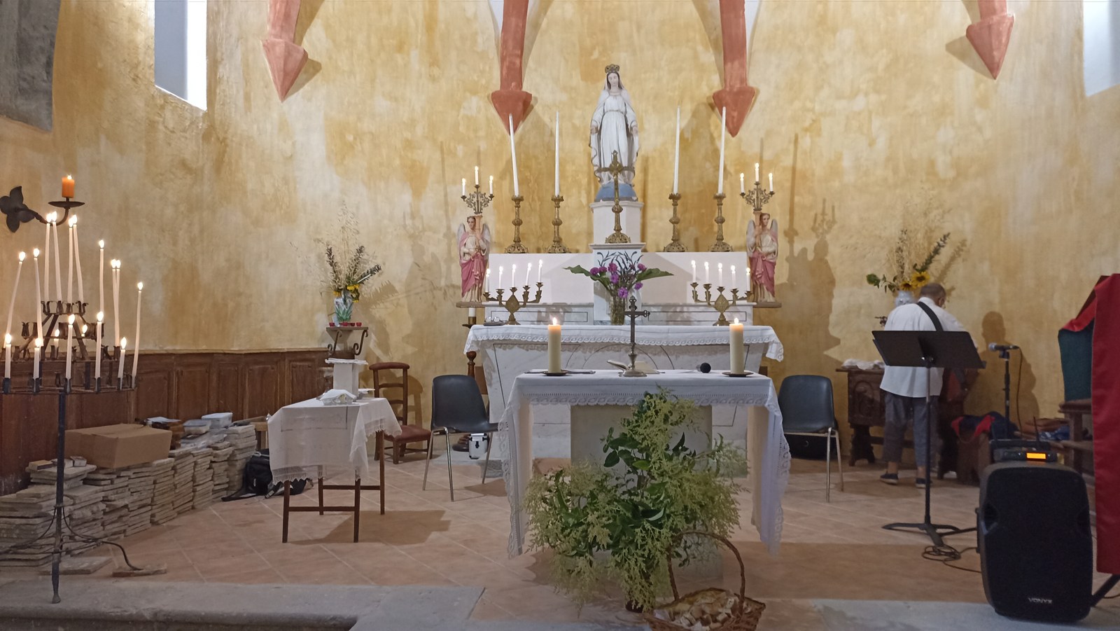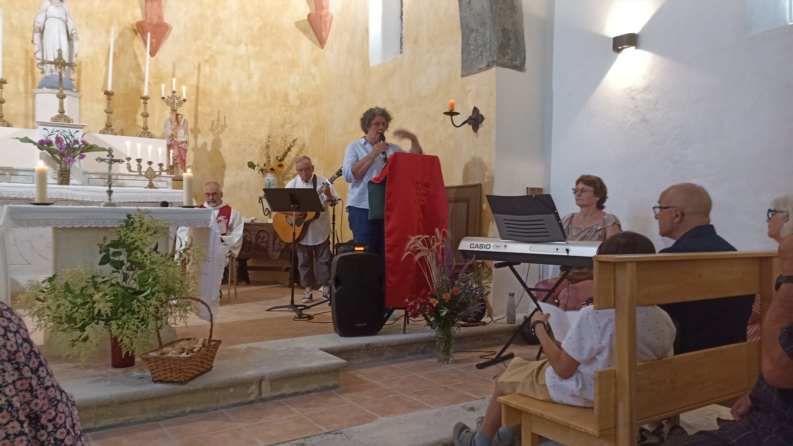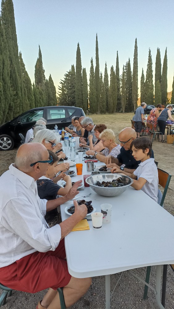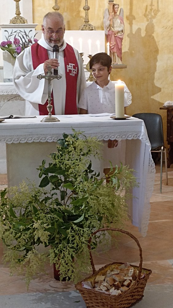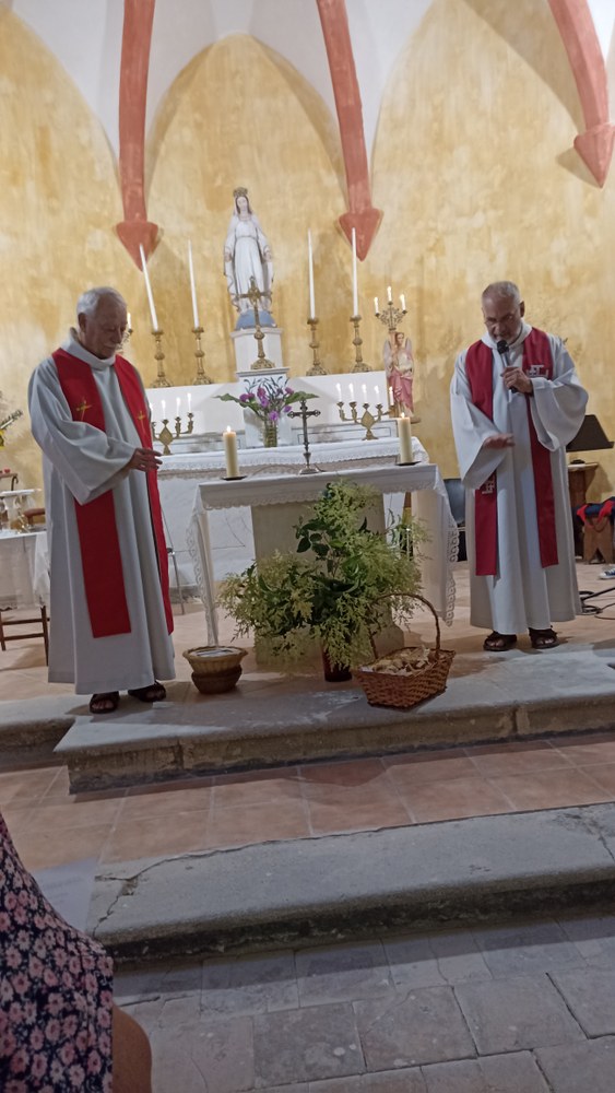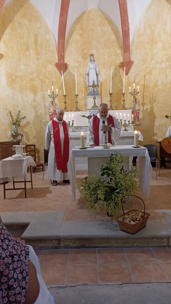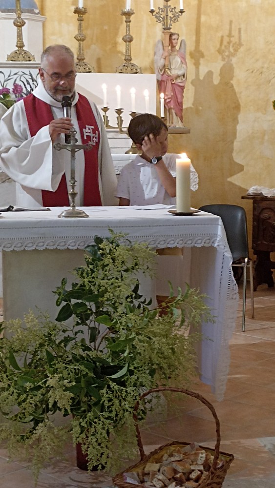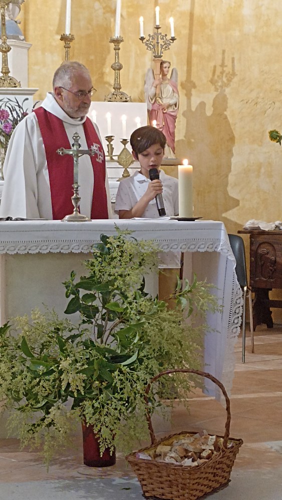 Lors de ce pèlerinage à la chapelle Notre Dame de Cambouras, pendant la messe, Axel a fait sa deuxième étape de son baptême. La célébration s'est achevée par un repas très convivial dans une ambiance agréable. Les convives ont pu savouré des moules et saucisses grillées.