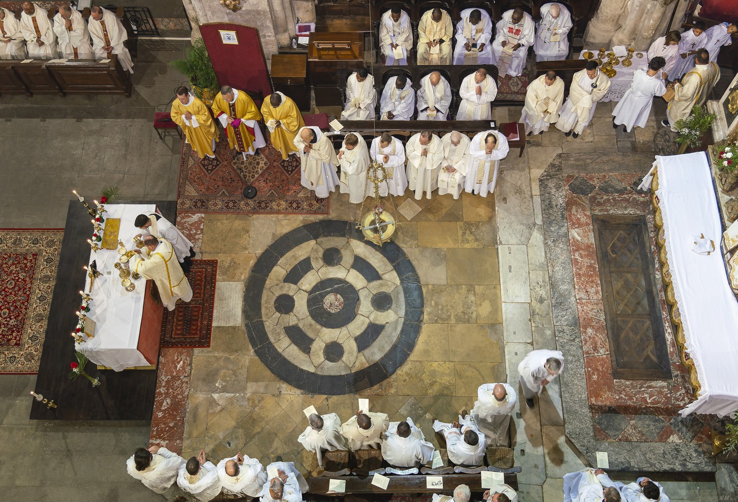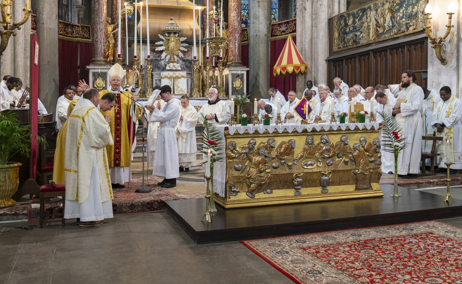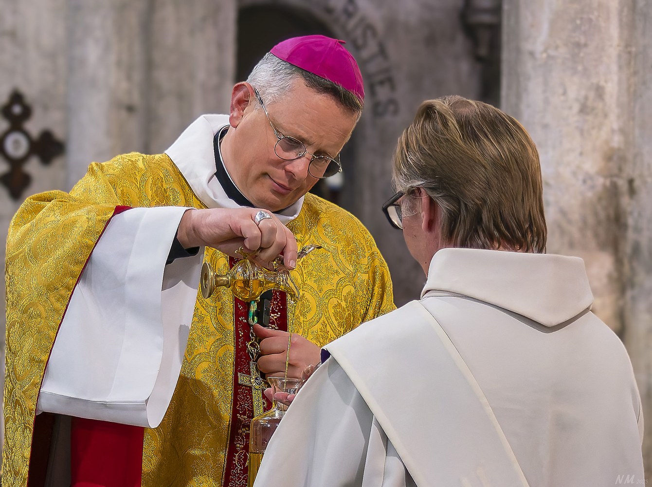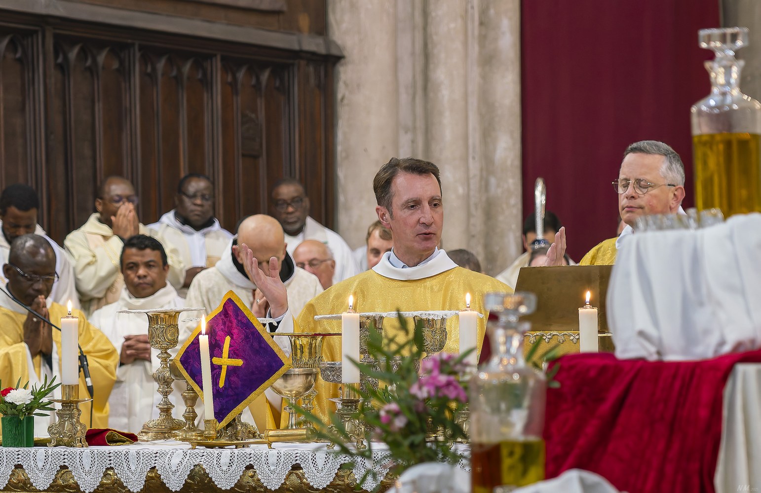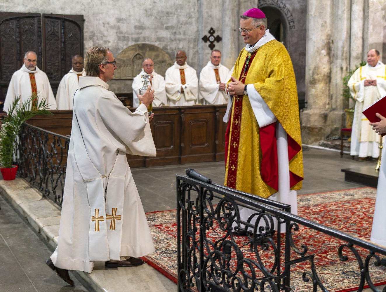 Au cours de ce moment fort de l’année liturgique, l’évêque a béni les trois huiles saintes : l’huile des catéchumènes, l’huile des malades et le saint chrême.