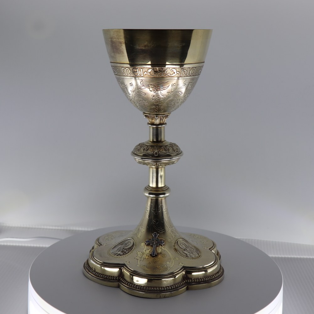 Coupe appartenant à l’Abbé Georges Gardes, posée sur un pied, utilisée pour la célébration eucharistique.
